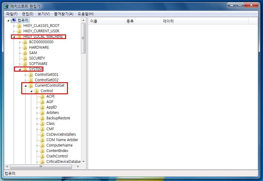 그리고 여기서 해당 경로에 따라 들어가줘야 하는데요. 먼저, HKEY_LOCAL_MACHINE 폴더를 더블 클릭한 뒤 SYSTEM을 선택한 후 그 후 CurrentControlSet를 클릭, Control폴더를 클릭해 줍니다. 그리고 마지막으로 StorageDevicePolicies 경로로 들어갑니다.