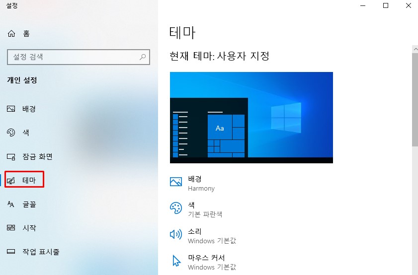 개인 설정에서는 배경, 색, 잠금화면, 테마, 글꼴, 시작, 작업표시줄 메뉴가 있는데, 내 컴퓨터 바탕화면은 테마에서 설정합니다. 이 메뉴에서는 배경 메뉴를 사용하게 됩니다. 가끔식 바탕화면을 바꿔주는 것이 기분 전환에 도움이 되기 때문입니다.